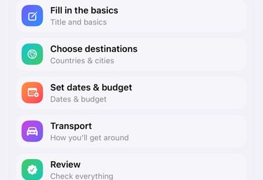 Met tripmaster stel je snel je reis samen, van bestemming tot budget.