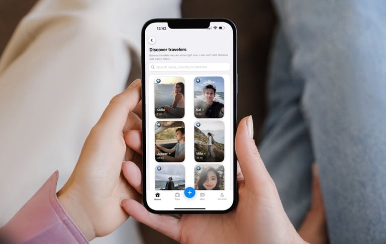Vind reizigers met dezelfde interesses, ontdek wie er in de buurt is en maak samen plannen — spontaan of gepland.